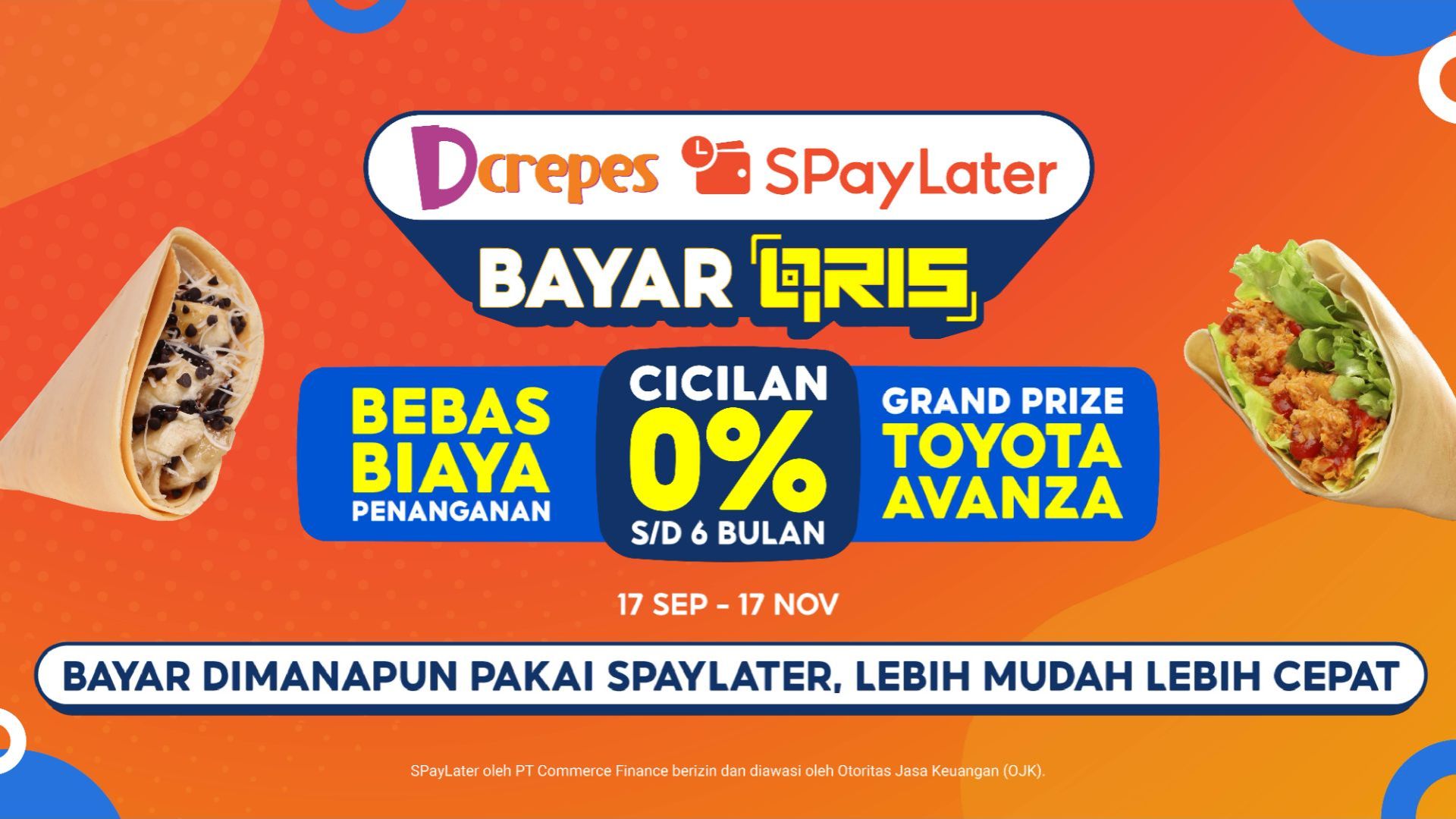 SPayLater menawarkan kemudahan bagi pengguna untuk melakukan pembayaran di Dcrepes menggunakan QRIS. Terlebih lagi, mulai periode 23 September - 17 November 2024 ada promo SPayLater Bayar QRIS di mana pengguna bisa bayar QRIS pakai SPayLater dan menikmati promo cicilan 0% hingga 6 bulan* dan Bebas Biaya Penanganan di Dcrepes dalam promo SPayLater Bayar QRIS! Pengguna juga bisa mendapatkan kesempatan memenangkan hadiah utama, yaitu satu buah mobil Toyota Avanza.